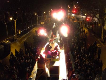 Am 5. Jänner san dann über 3 Stunden am Abend die Hl. 3 Könige durch Barcelona gezogen. War ah riesen Parade mit Tänzen, Musik, Feuershows,... Hat ma echt gut gefallen die Cabalgata de los Reyes Magos! Die Kinder bekommen dann am 6. Jänner in da Früh von ihnen die Geschenke. Tzz...zweimal Geschenke - unfair! ;)